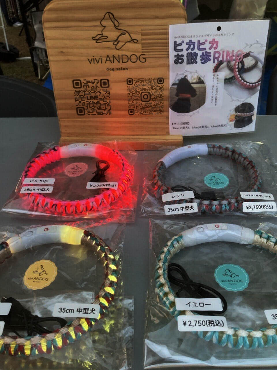 イベントで完売した「光るお散歩リング」やケア用品は、viviANDOG店舗でも販売しています。明るく清潔な空間で、わんちゃんの性格や毛質に合わせたケアをご提案。お気軽にお立ち寄りください🐾